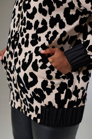 Unleash your wild side with our Leopard Velvet Bomber Jacket